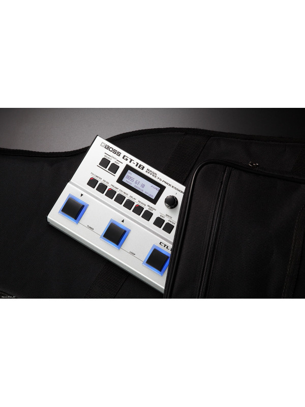 The GT-1B gives bass players a massive range of pro tone-shaping power in a small and robust package. Backed by BOSS’s premium sound engine, you have full access to a huge selection of bass-optimized amps and effects for stage and studio playing. The streamlined interface lets you dial in sounds fast, while the onboard control switch and expression pedal enable you to adjust multiple effects in real time. And by connecting to BOSS TONE CENTRAL, you can download new patches, editing software, and more. Compact, rugged, and battery powered, the GT-1B is the ultimate mobile tone companion for every bassist.