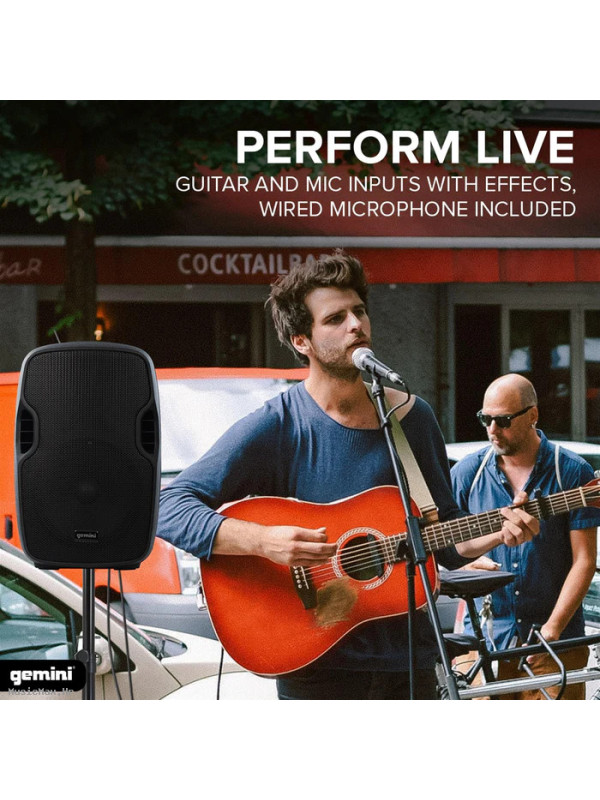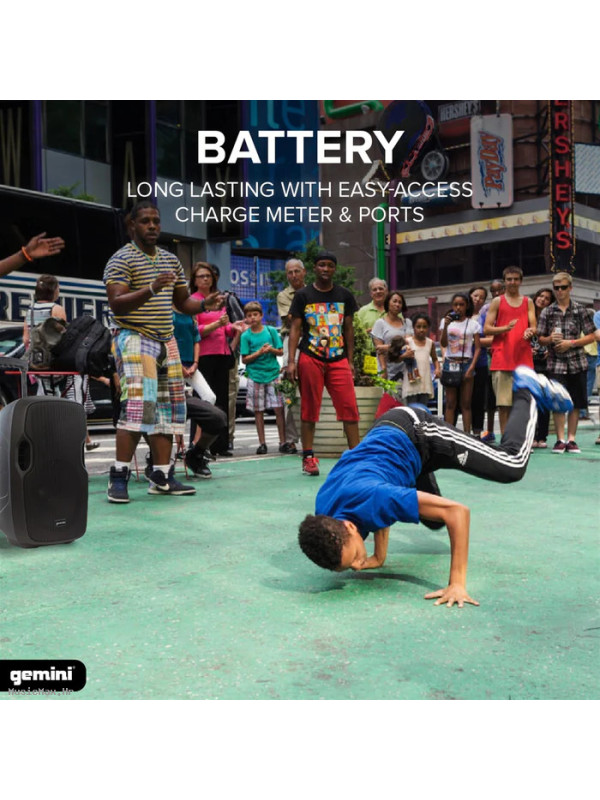 The Gemini AS-10TOGO is designed for powerful stereo sound with a rechargeable battery in a convenient portable package. Thanks to its backpack size, integrated retractable handle, and smooth rolling wheels, this feature-packed speaker has you covered whilst on the go. It combines the deep punch of 10” woofer with 1.2” high-frequency compression driver to create big, bold sound, regardless of its application. You would be hard pressed to find all these features in one pack - Bluetooth, FM radio, USB and SD playback. Best of all, you can customize sound with the professional audio mixer integrated right on the back panel.