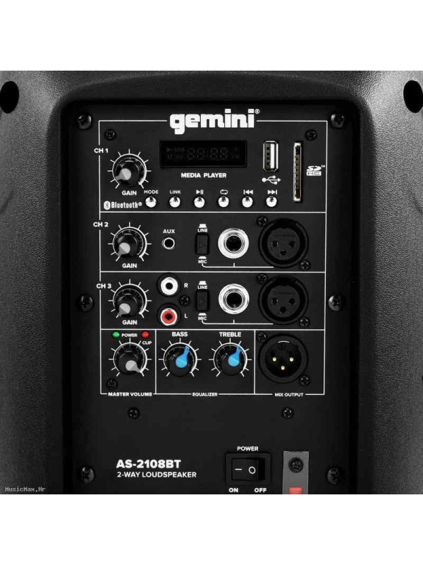 S tolikom snagom u kompaktnom dizajnu, savršen je za bilo koju priliku, i Gemini s ponosom ističe kao izvrstan omjer cijene i kvalitete. Ugrađeni medijski player omogućuje reprodukciju MP3/WAV datoteka s USB-a i SD kartice, kao i FM radio prijem.