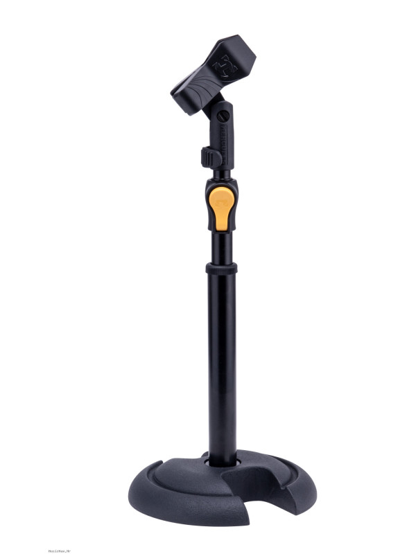 The HERCULES HCMS-100B PLUS microphone stand with round base features the convenient EZ Grip height adjustment, a solid "H"-base and includes an EZ Microphone Clip. The HCMS-100B+ offers exceptional stability and a space-saving design that makes it useful in tight spaces. This stand is perfect as a desktop microphone, for kick drum live recording or other low profile applications.
