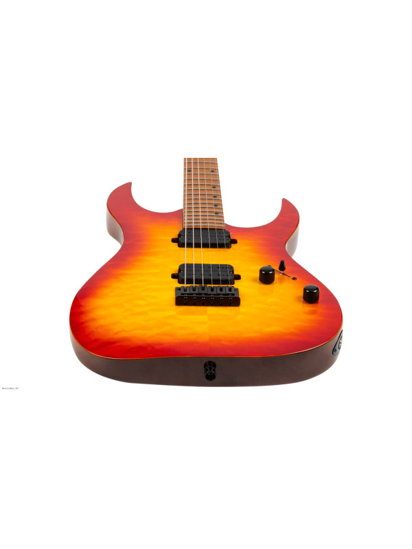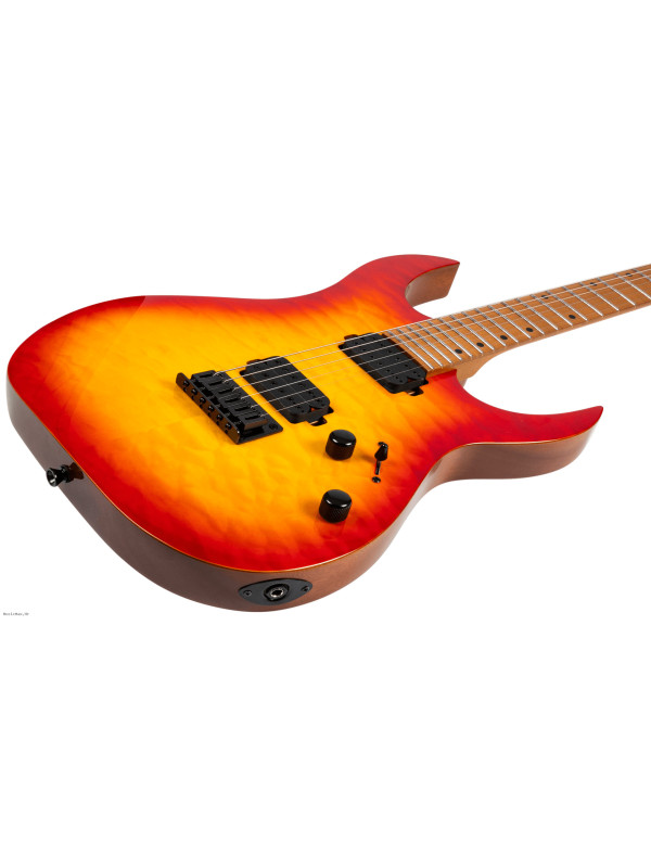 The S-500 is the pinnacle of the six string Spira lineup, meticulously designed for players who demand the highest level of performance and aesthetics. The S-500 features a luxurious mahogany body with a stunning quilted maple top, delivering both exceptional resonance and eye-catching beauty. The Canadian roasted maple neck and fretboard offer unmatched stability and a smooth, responsive playing experience, ideal for advanced techniques.